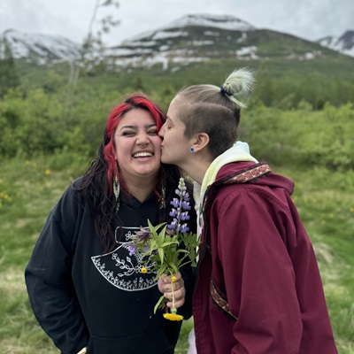 Bristol Sanatu Lakshas is an Iñupiaq artist based in Woodinville, Washington, USA with cultural roots in Utqiaġvik (Barrow), Alaska. Professionally, Lakshas works as a technical artist designing visual effects and animation tools for video games and currently works as a VFX artist on Never Alone 2, an Iñupiat-inspired adventure video game. She also has a practice making mixed media sculpture using clay and found materials, sewing, crocheting and beading.