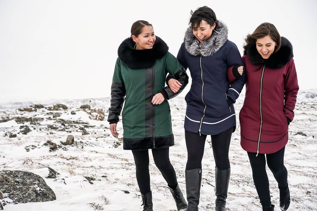 Kakuktinniq uses her platform to promote the use of sealskin in the fashion industry, working to build an engaged audience for Inuit fashion and culture and the use of traditional materials such as sealskin [4]. For Kakuktinniq, sealskin coats and accessories are more than fashion statements; they are a part of her heritage and the use of sealskin garments are also well-suited to the extreme cold temperatures in the north. Sealskin is coated in a natural oil, and when left untreated repels water. Sealskin is also an excellent insulator as it retains a significant amount of body heat.