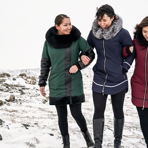 Kakuktinniq’s coats and accessories are available online through her website as well as in-store. She is part of a new generation of artist-entrepreneurs who work outside the traditional channels of Inuit art distribution [5], using social media sites such as Facebook to grow their audience and sell garments. Kakuktinniq has been featured in the Inuit Art Quarterly as well as FLARE magazine. Her clothing has been shown in runway presentations throughout Canada. In February 2019, Victoria's Arctic Fashion will be featured in two runway presentations during Paris Fashion Week, Paris, France.