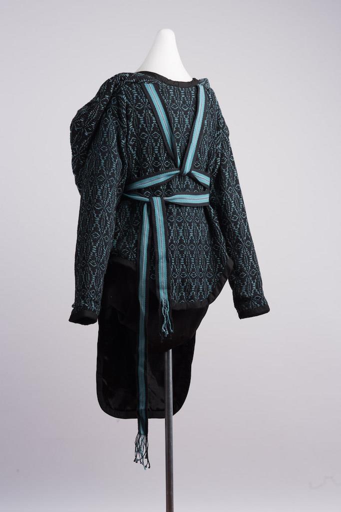 Chantelle Andersen is a textile artist from in Makkovik, Nunatsiavut, NL. She studied Textiles: Craft and Apparel Design at the College of the North Atlantic in St John’s, NL, and honed her skills in the weaving and surface embellishment stream. As part of her final year, she displayed her work during a fashion show at the Resource Centre for the Arts, in St. John’s, in May 2012. Andersen creates wearable artworks such as amautiit and adds contemporary modifications and ornamentation to her pieces. Her technical proficiency involves machine embroidery, beadwork and manipulating natural materials such as moosehide. Her Woven Wool Amauti (2012) was displayed as part of curator Heather Igloliorte’s travelling exhibition SakKijâjuk: Art and Craft from Nunatsiavut. Andersen wove an amauti in shades of blue, first completing the outer layer before lining it with a silky fabric and then weaving in a wool trim [1].The garment’s geometric pattern creates a tactile texture and speaks to both the past and the present.