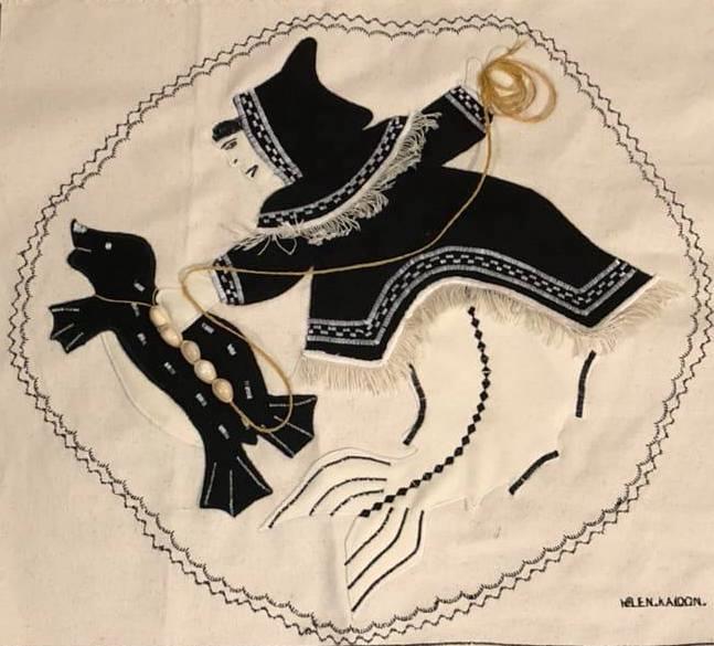 Helen Rose Kaloon is a textile artist born in 1959 in Kugluktuk, NU and currently resides in Uqsuqtuuq (Gjoa Haven), NU. Kaloon began sewing at a young age, learning from her mother when she was eight years old. Although predominantly known for her wall hangings and tapestries, she is also involved in clothing and doll production, both of which are at the root of her artistic journey [1].